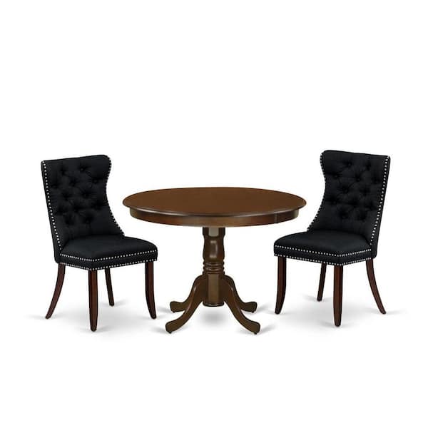 3-Piece Mahogany Finish Solid Wood Top-Round Upholstered Dining Room Set-Seats 4