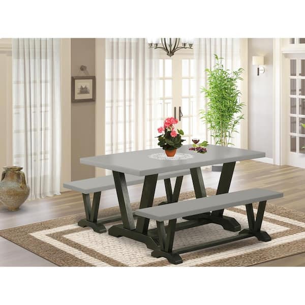 3-Piece Rectangle Natural Oak Finish Solid Wood Top Dining Table with 2-Benches with Backless