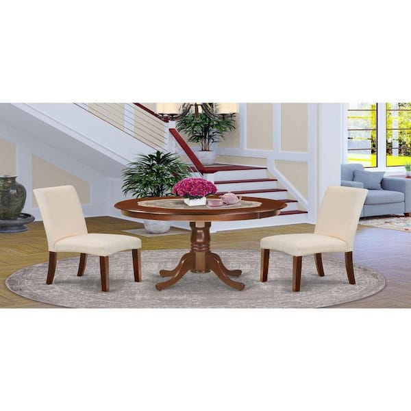 3-Piece Round Mahogany Finish Solid Wood Top Dining Table with 2 Parson Chairs with Lattice Back