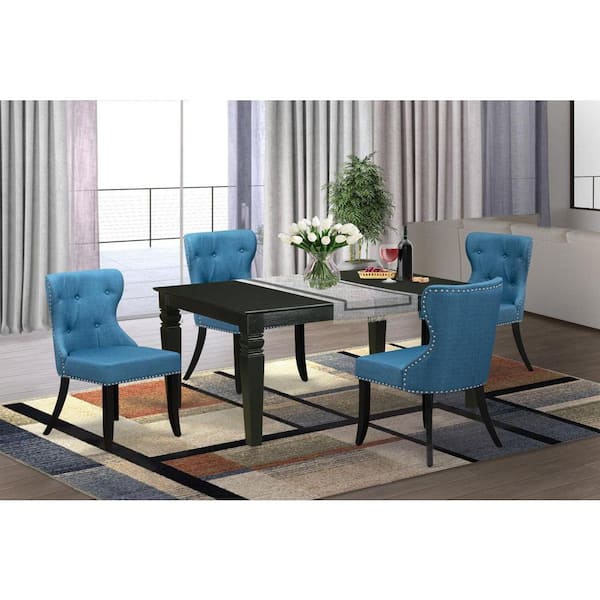 5-Piece Black Finish Solid Wood Top Dining table with 4 Chairs with Lattice Back