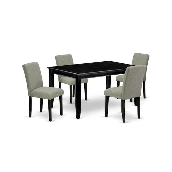 5-Piece Black Finish Solid Wood Top-Rectangular Dining Room Set-Seats 4