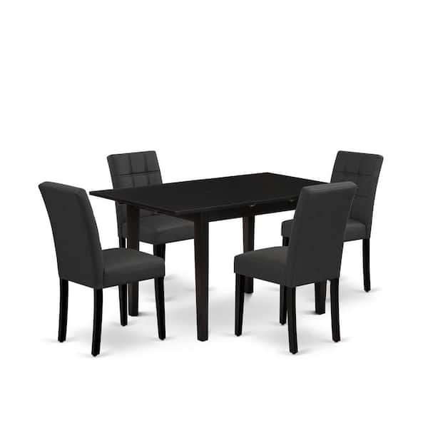 5-Piece Black Finish Solid Wood Top - Rectangular Dining Room Set with Butterfly Leaf - Seats 4