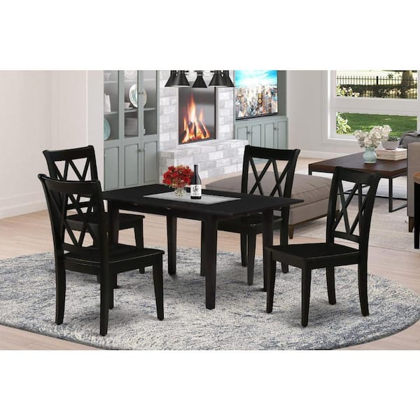 5-Piece Black Finish Solid Wood Top-Rectangular Dining Room Set with Butterfly Leaf-Seats 4