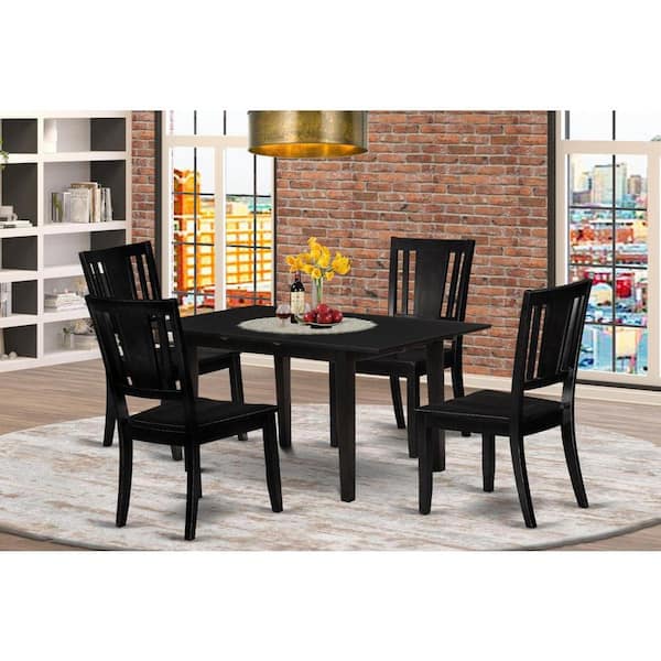 5-Piece Black Finish Solid Wood Top - Rectangular Dining Room Set with Butterfly Leaf - Seats 4