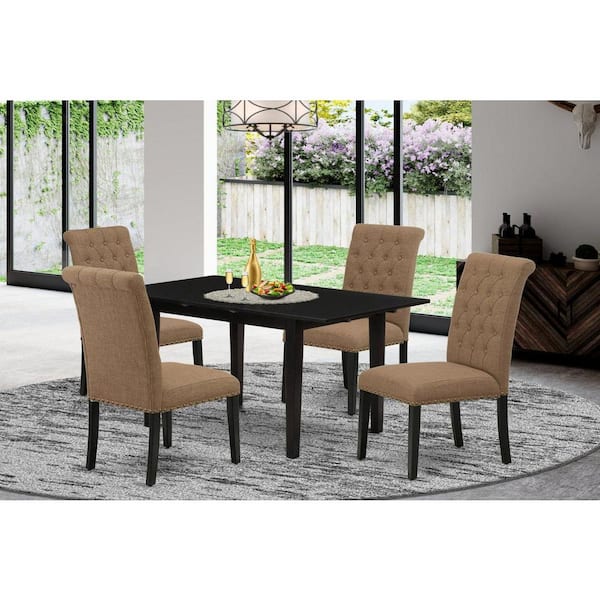 5-Piece Black Solid Wood Top - Rectangular Button Tufted Upholstered Dining Room Set with Butterfly Leaf - Seats 4