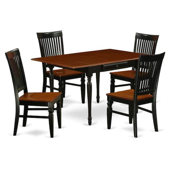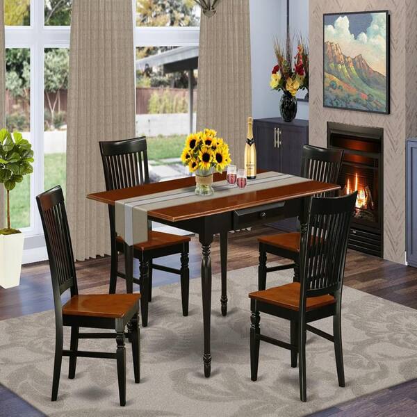 5-Piece Black and Cherry Finish Solid Wood Top - Dining Room Set with Dropleaf - Seats 4
