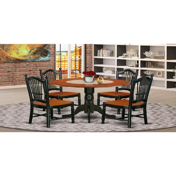 5-Piece Black and Cherry Finish Solid Wood Top Dining table with 4 Chairs with Lattice Back