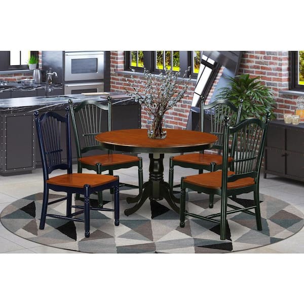 5-Piece Black and Cherry Finish Solid Wood Top Dining table with 4 Chairs with Lattice Back