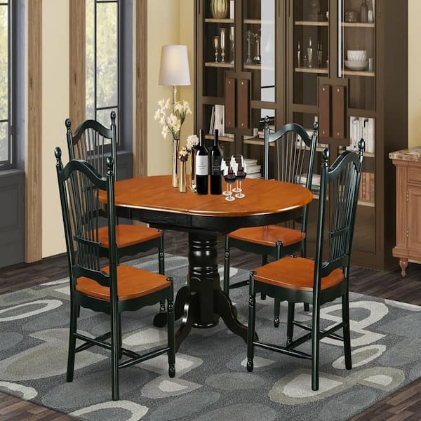 5-Piece Black and Cherry Finish Solid Wood Top Dining table with 4 Chairs with Lattice Back