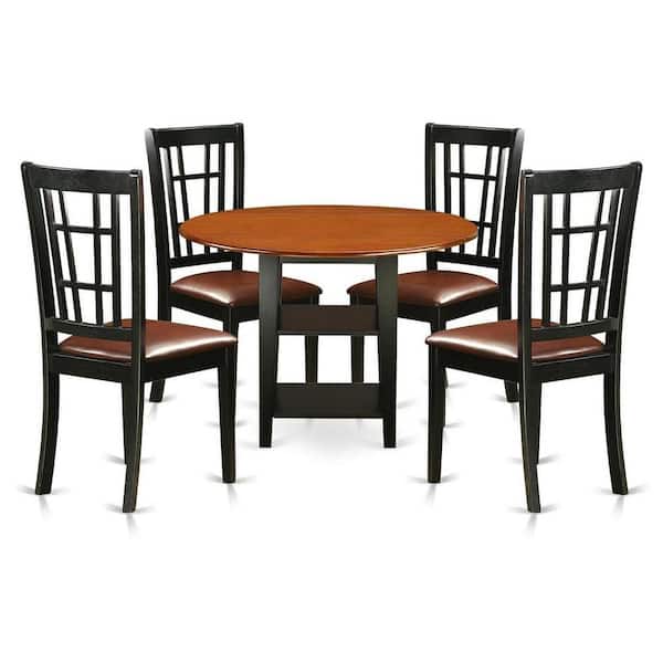 5-Piece Black and Cherry Finish Solid Wood Top - Round Dining Room Set - Seats-4