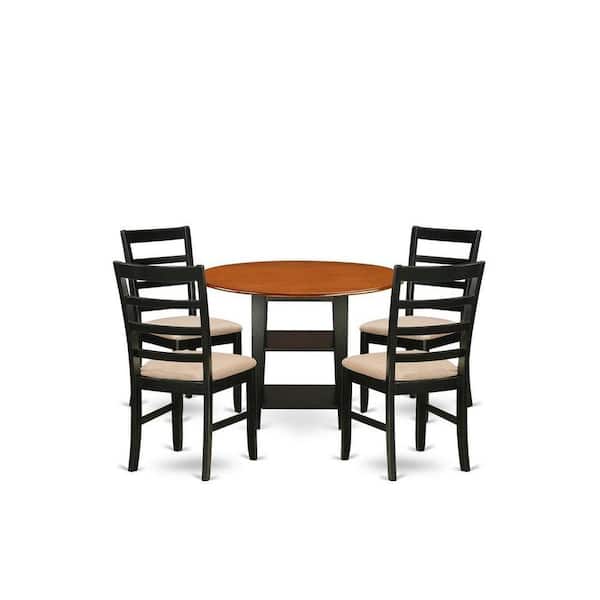 5-Piece Black and Cherry Finish Solid Wood Top - Round Dining Room Set - Seats-4