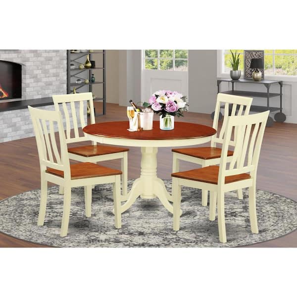 5-Piece Buttermilk and Cherry Finish Solid Wood Top Dining table with 4 Chairs with Lattice Back
