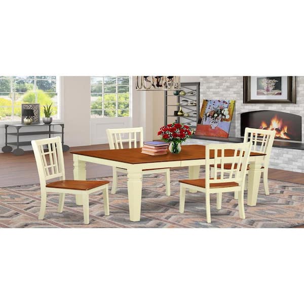 5-Piece Buttermilk and Cherry Finish Solid Wood Top Dining table with 4 Chairs with Lattice Back