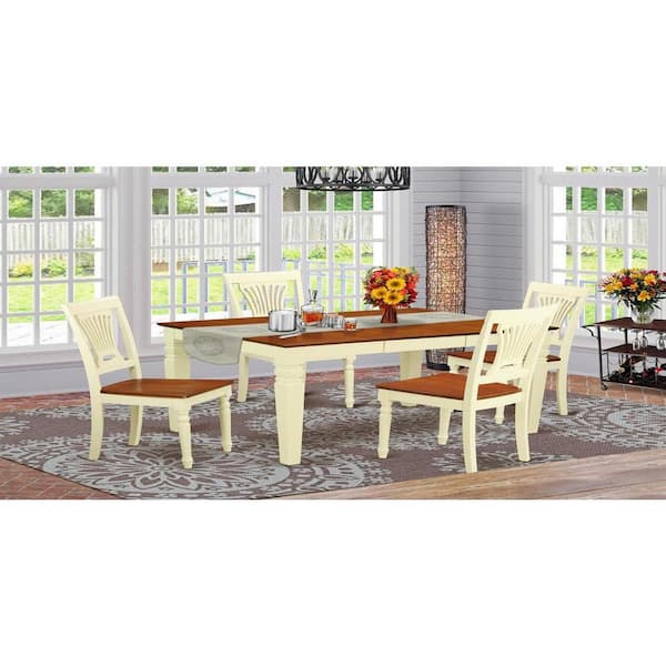5-Piece Buttermilk and Cherry Finish Solid Wood Top Dining table with 4 Chairs with Lattice Back
