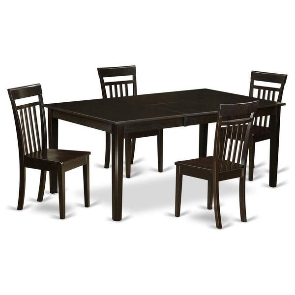 5-Piece Cappuccino Solid Wood Top - Dining Room Set with Leaf - Seats 4
