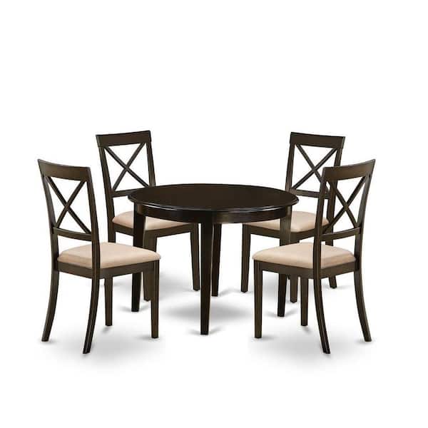 5-Piece Cappuccino Solid Wood Top - Round Dining Room Set - Seats 4