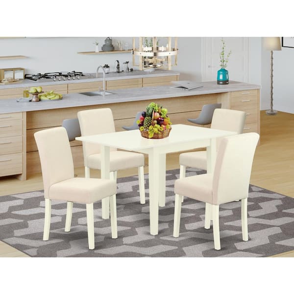 5-Piece Linen White Finish Solid Wood Top - Dining Room Set (Seats-4)