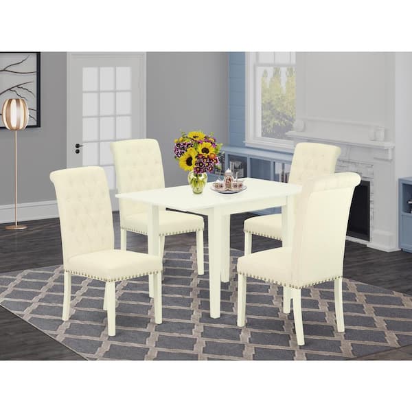 5-Piece Linen White Finish Solid Wood Top - Dining Room Set (Seats-4)