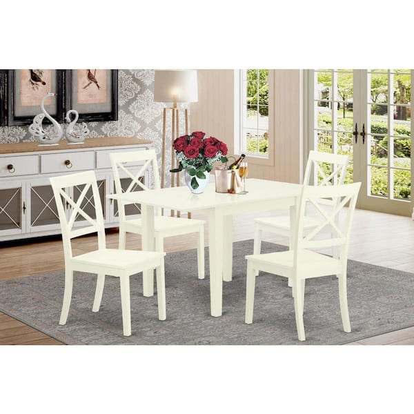 5-Piece Linen White Finish Solid Wood Top - Dining Room Set - Seats 4