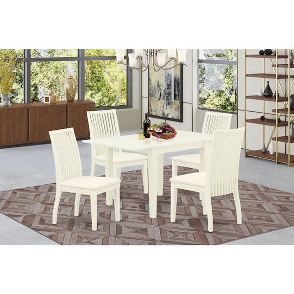 5-Piece Linen White Finish Solid Wood Top - Dining Room Set - Seats 4