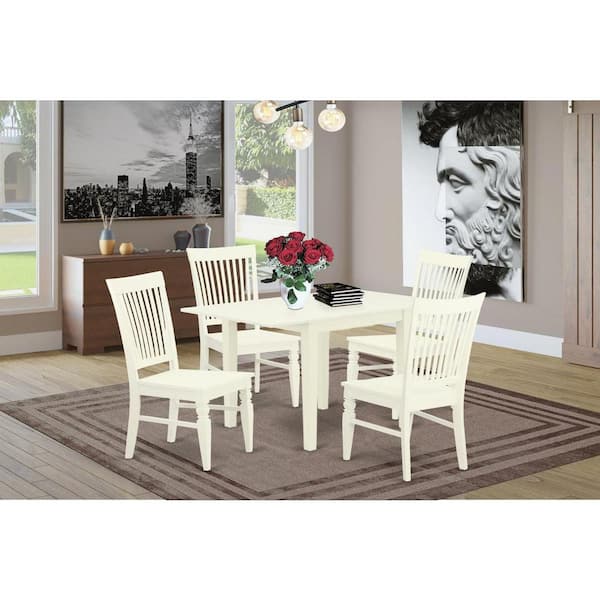 5-Piece Linen White Finish Solid Wood Top - Dining Room Set (Seats-4)
