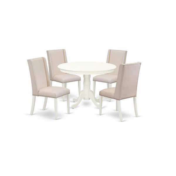 5-Piece Linen White Finish Solid Wood Top Dining Table with 4 Parson Chair with Lattice Back