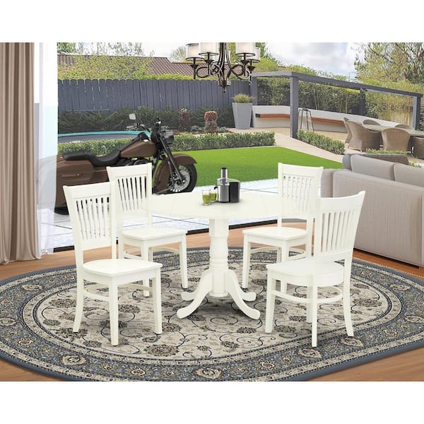 5-Piece Linen White Finish Solid Wood Top Dining table with 4 Chairs with Drop Leaf Slat Back
