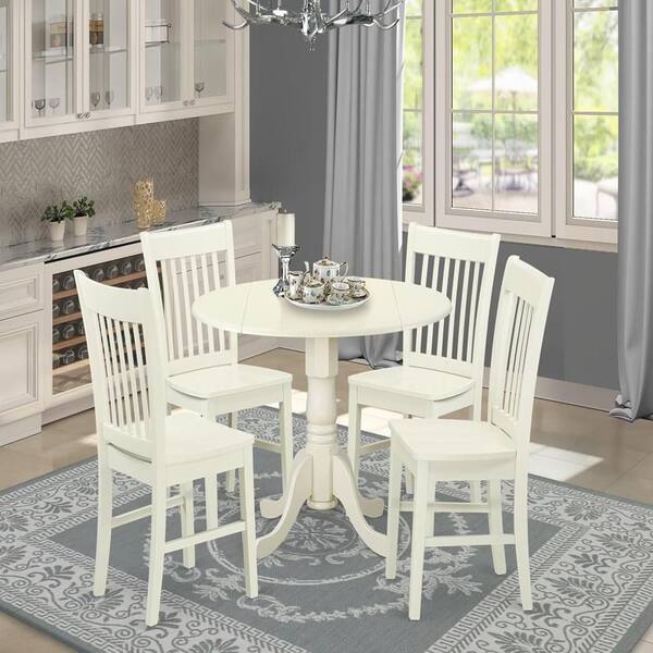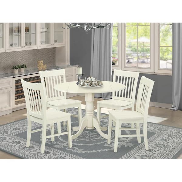 5-Piece Linen White Finish Solid Wood Top Dining table with 4 Chairs with Lattice Back