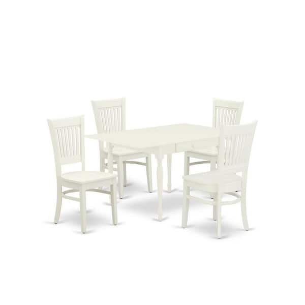 5-Piece Linen White Finish Solid Wood Top - Rectangular Dining Room Set Seats-4