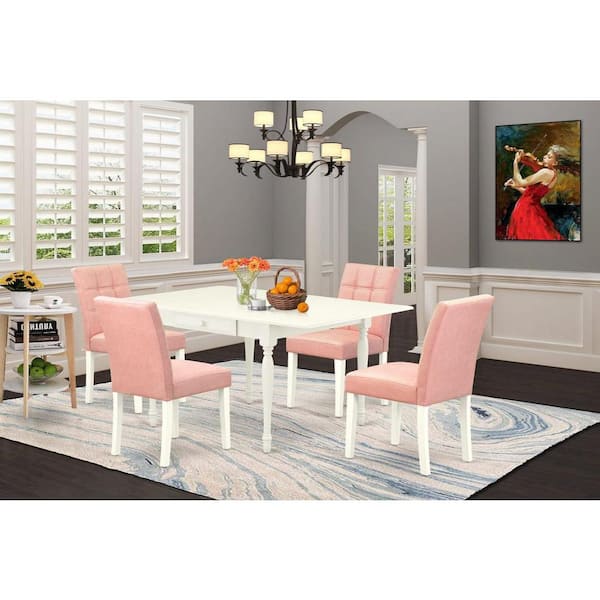 5-Piece Linen White Finish Solid Wood Top - Rectangular Dining Room Set with Dropleaf (Seats-4)