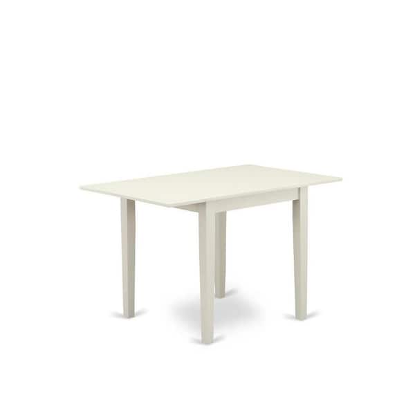 5-Piece Linen White Finish Solid Wood Top - Rectangular Dining Room Set with Dropleaf - Seats 4