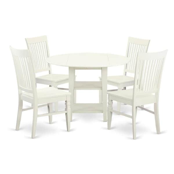 5-Piece Linen White Finish Solid Wood Top - Round Dining Room Set - Seats 4