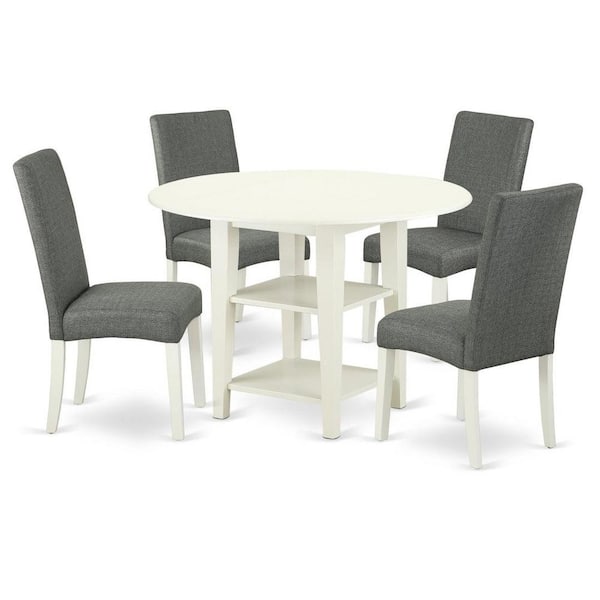 5-Piece Linen White Finish Solid Wood Top-Round Dining Room Set with Dropleaf-Seats 4