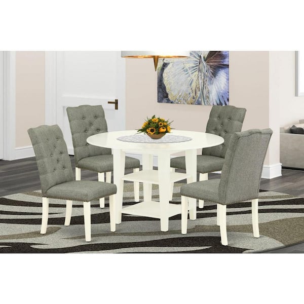5-Piece Linen White Finish Solid Wood Top - Round Dining Room Set with High Back - Seats 4