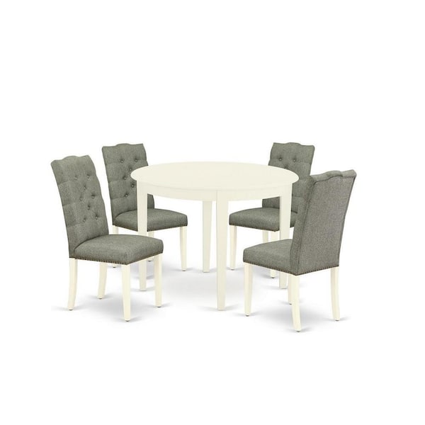 5-Piece Linen white Solid Wood Top-Round Dining Room Set-Seats 4