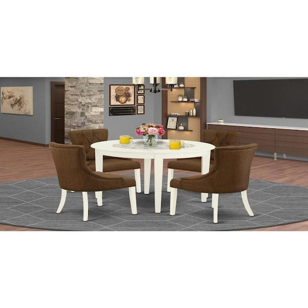 5-Piece Linen white Solid Wood Top - Round Dining Room Set - Seats 4