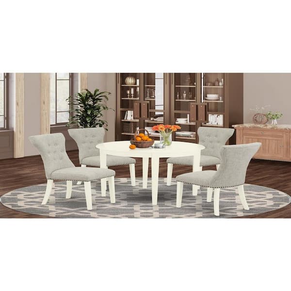 5-Piece Linen white Solid Wood Top - Round Dining Room Set - Seats 4