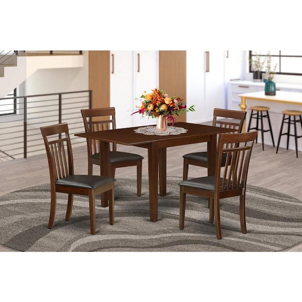 5-Piece Mahogany Finish Solid Wood Top - Dining Room Set - Seats 4