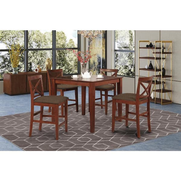 • Elegant 5-piece set with Mahogany finish and solid wood tabletop