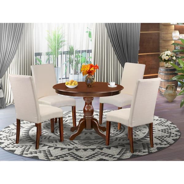 5-Piece Mahogany Finish Solid Wood Top Dining table with 4-Chairs with Lattice Back