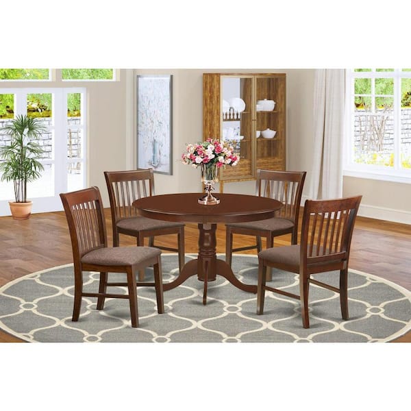 5-Piece Mahogany Finish Solid Wood Top Dining table with 4 Chairs with Lattice Back