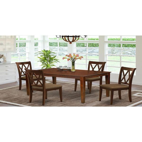 5-Piece Mahogany Finish Solid Wood Top-Rectangular Dining Room Set-Seats 4