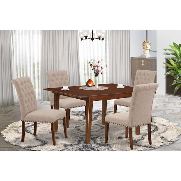 5-Piece Mahogany Finish Solid Wood Top - Rectangular Dining Room Set with Butterfly Leaf - Seats 4