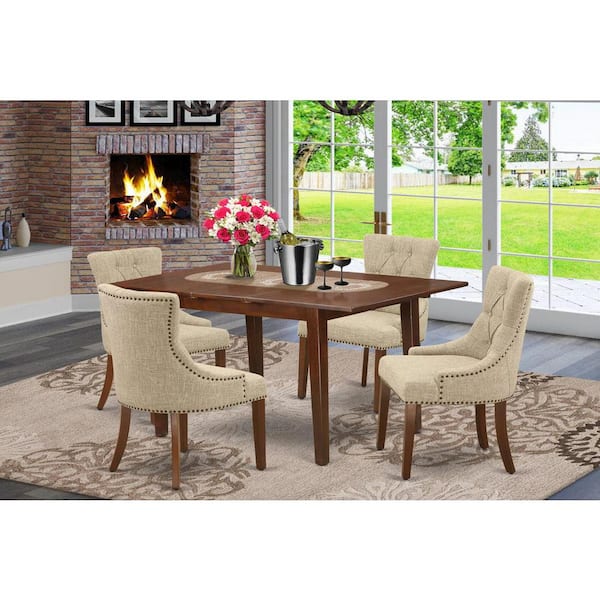 5-Piece Mahogany Finish Solid Wood Top - Rectangular Dining Room Set with Butterfly Leaf - Seats 4