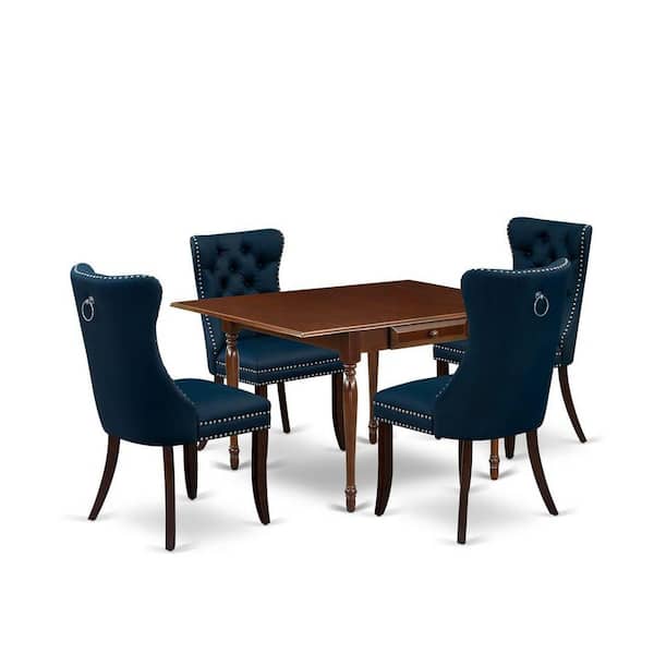 5-Piece Mahogany Finish Solid Wood Top Rectangular Dining Room Set with Dropleaf (Seats-4)