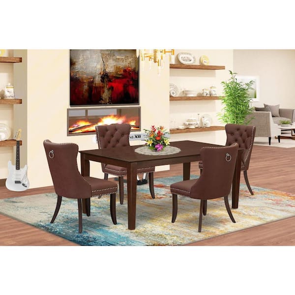 5-Piece Mahogany Finish Solid Wood Top-Rectangular Upholstered Dining Room Set- Seats-4