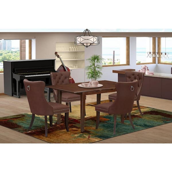 5-Piece Mahogany Finish Solid Wood Top - Rectangular Upholstered Dining Room Set with Butterfly Leaf - Seats 4