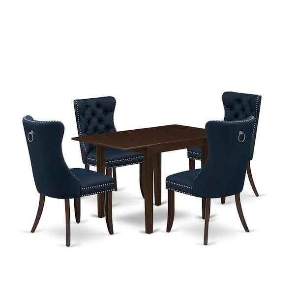 5-Piece Mahogany Finish Solid Wood Top - Rectangular Upholstered Dining Room Set with Dropleaf - Seats 4