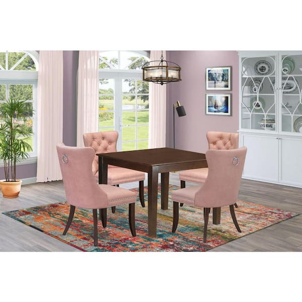 5-Piece Mahogany Finish Solid Wood Top - Square Upholstered Dining Room Set - Seats 4