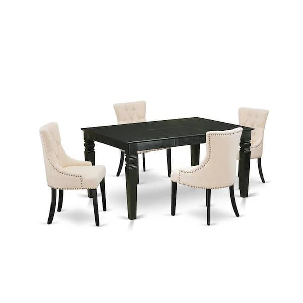 5-Piece Rectangle Black Finish Solid Wood Top Dining Table with 4-Parson Chair with Butterfly Leaf Lattice Back